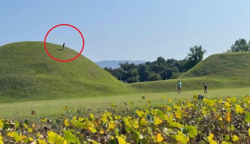 최근 경주 신라 고분 위에 아이가 올라가 있는 모습 (서경덕 교수팀 제공)