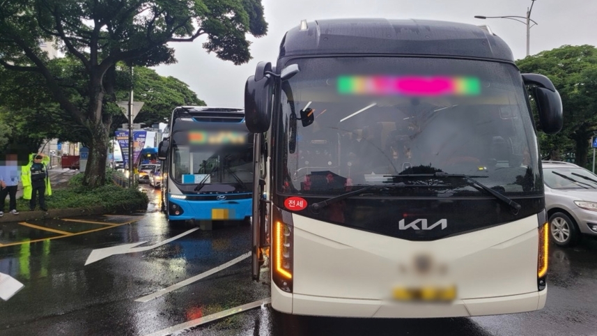 제주소방안전본부에 따르면 오늘(16일) 아침 8시 56분쯤 제주시 연동 신제주로터리에서 관광버스와 시내버스가 충돌했습니다.