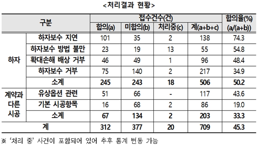 신축 공동주택 관련 피해 구제 신청 처리 결과 (사진, 한국소비자원)