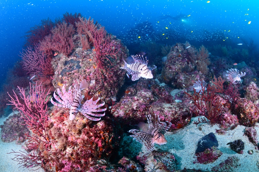이번 대회 챔피언은 양충홍 작가가 촬영한 작품으로 별처럼 반짝이는 치어 무리들을 사냥하기 위해 라이언피쉬 한 무리가 기회를 노리는 긴장감 넘치는 모습을 담아냈습니다.