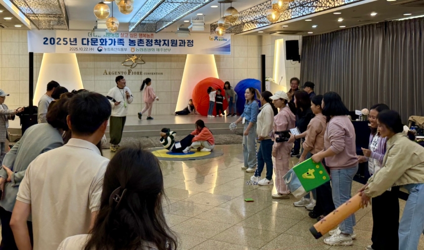 농협 제주본부는 22일 제주시 아젠토피오레컨벤션에서 ‘다문화가족 농촌정착지원과정’ 어울림마당을 진행했다고 밝혔습니다.