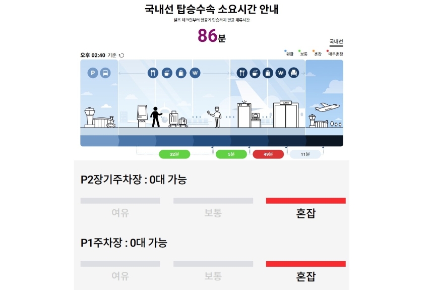 같은 시각 공항 주차장 상황도 ‘혼잡’으로 표시됐습니다.