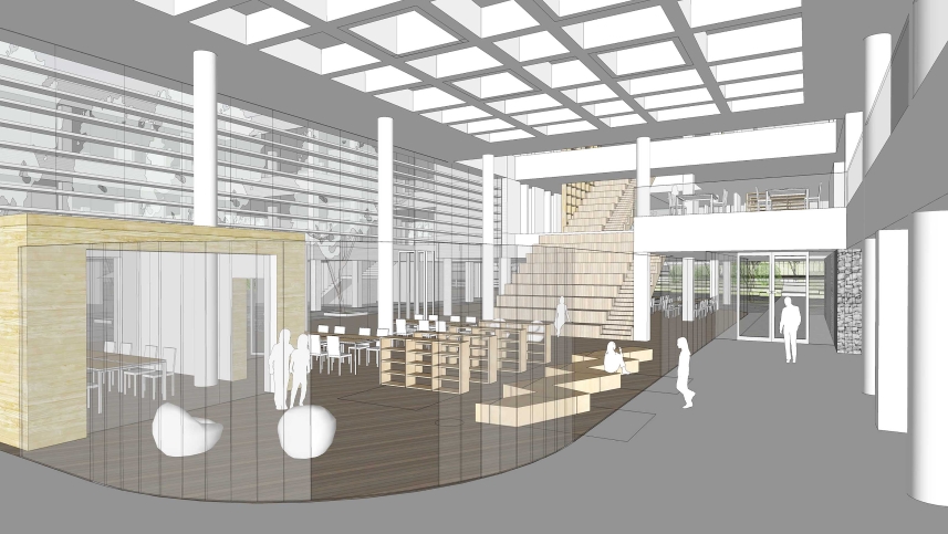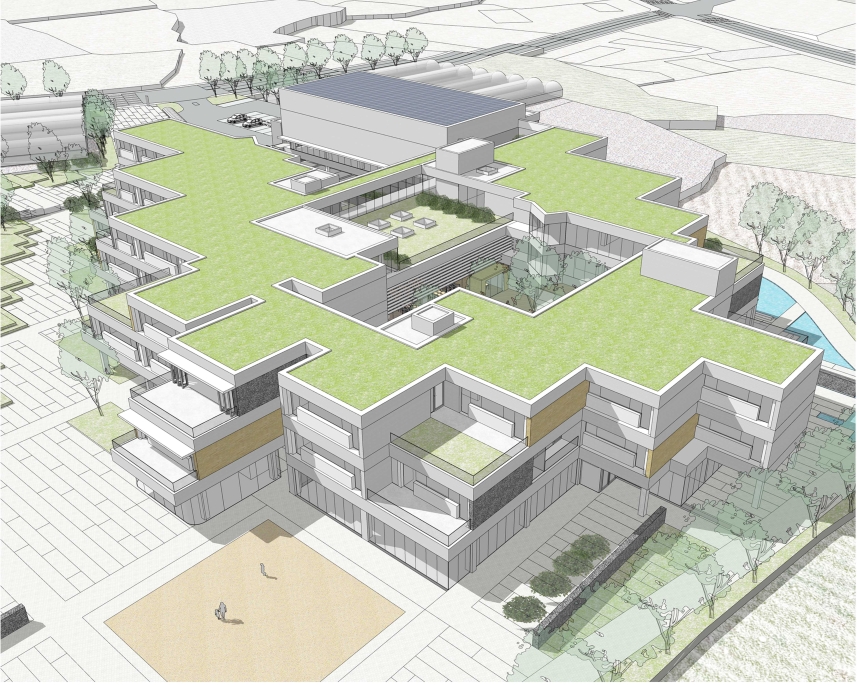 사유지를 매입해 학교를 짓는 첫 사례이기 때문에, 대지 형태를 최대한 활용하기 위해 개방적이고 유연한 미래형 교육 공간으로 구상했다는 설명입니다.