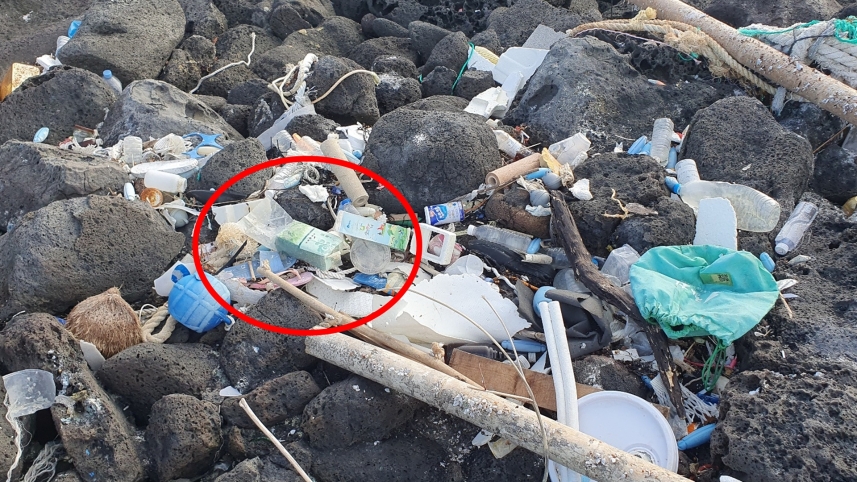 오늘(11일) 오후 제주시 우도면의 한 갯바위 해양 쓰레기 더미 속에 있던 마약 의심 물체