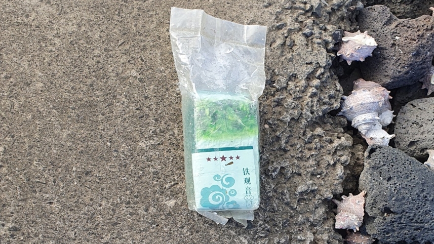 해양 쓰레기 더미 속에 있던 해당 물체는 최근 제주 해안 곳곳에서 발견된 벽돌 모양의 초록색 중국산 우롱차 포장 마약과 유사한 형태로, 반투명 봉투에 밀봉된 상태였습니다.