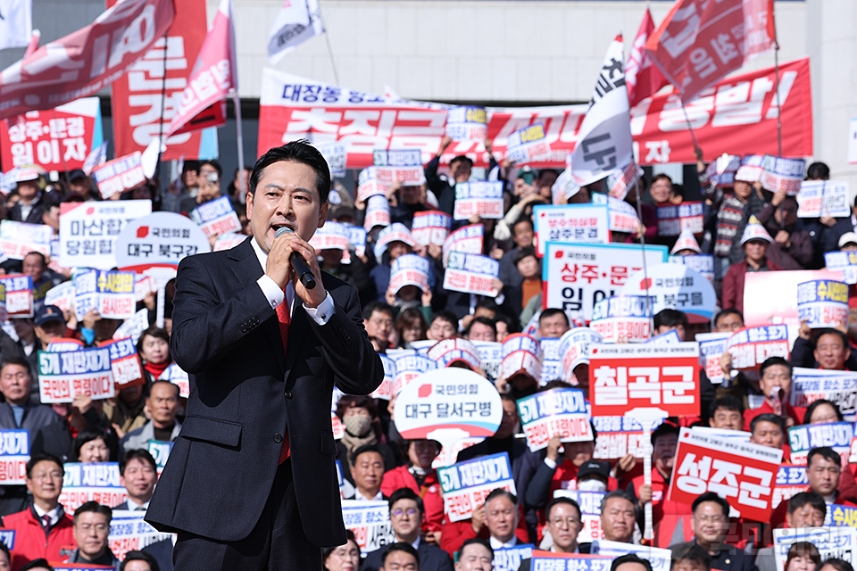 이날 집회에는 국민의힘 의원과 원외 당협위원장, 당원 등 약 1만5천 명(주최 측 추산)이 참석했습니다.