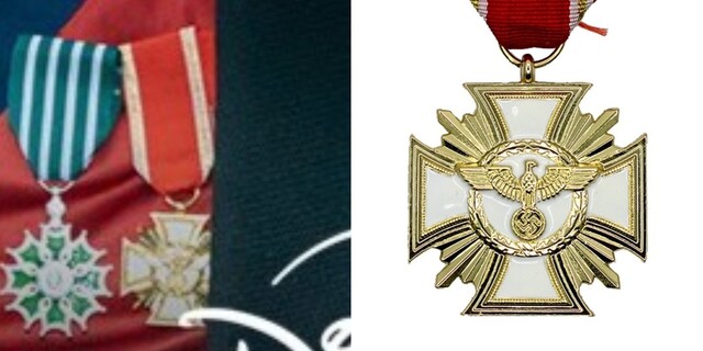 홍보사진에 나온 훈장(왼쪽)과 독일 나치의 3급 금장 근속훈장(SNS 갈무리)