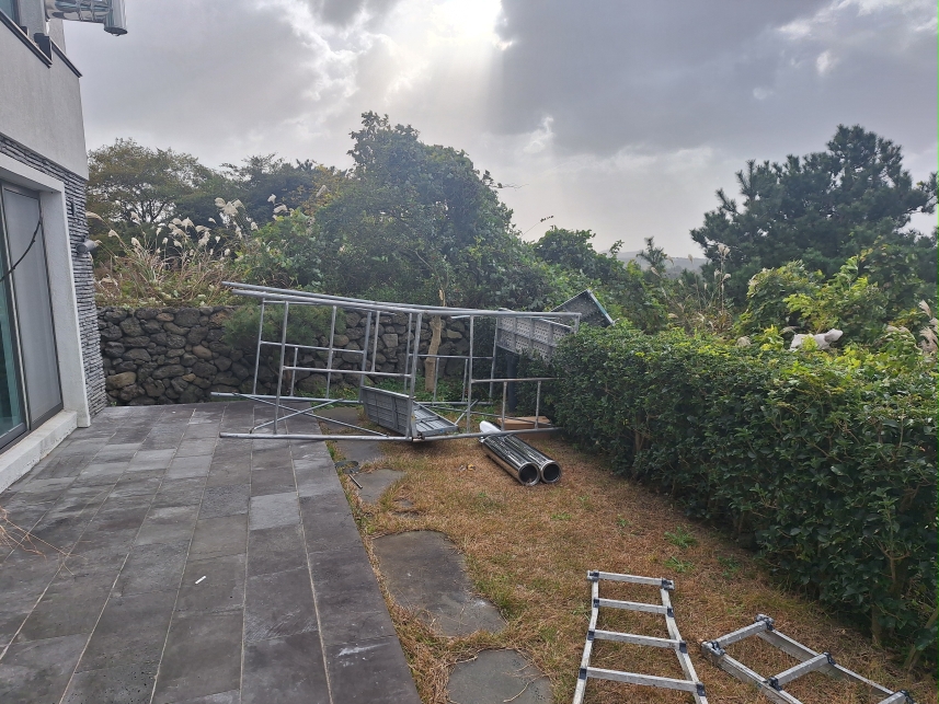 제주 지역에 강풍이 이어지면서 공사장 비계가 무너져 노동자들이 다치는 등 피해가 속출하고 있습니다.