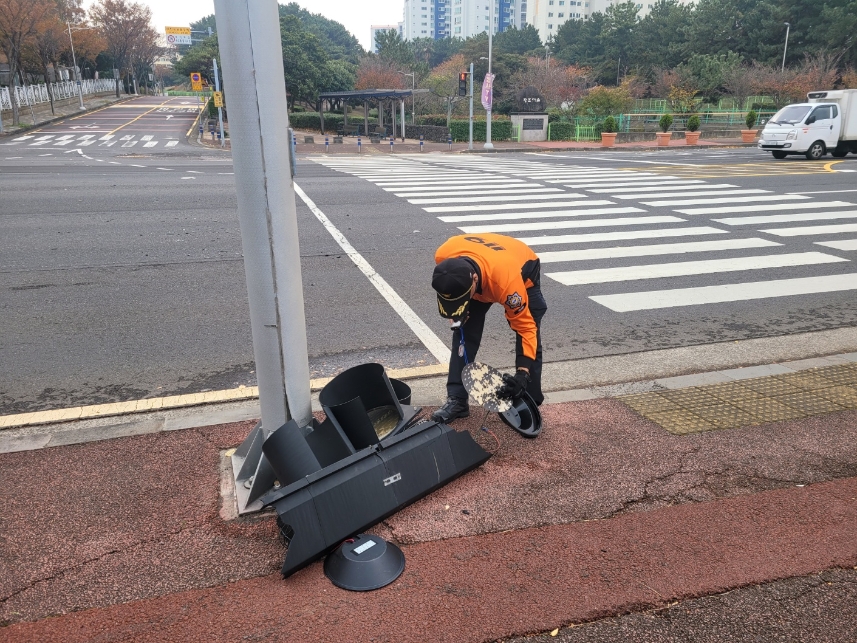 제주시 노형동 신호등 파손 사고 현장 (제주소방안전본부 제공)
