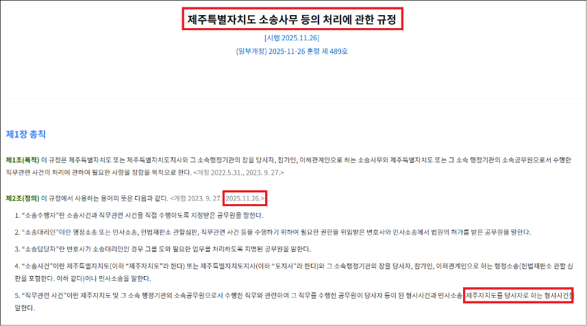 제주도가 형사소송 당사자에 '제주자치도'를 포함시켜 어제(26일)자로 개정한 소송사무 처리 규정.
