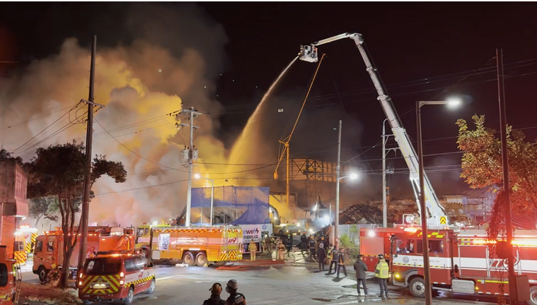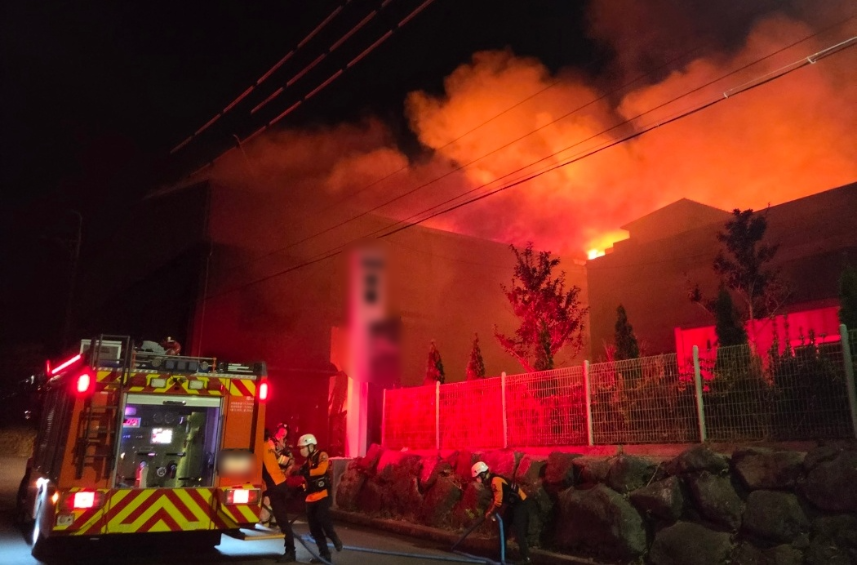 제주 서귀포시 토평공업단지 내 화재 현장 (제주소방안전본부 제공)