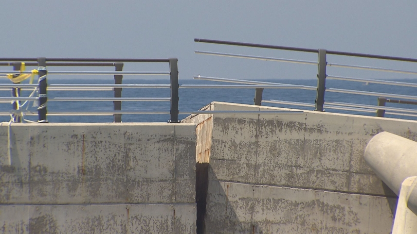 부실공사로 중간 부분이 끊어진 제주시 애월읍 고내포구 (촬영 윤인수 기자)