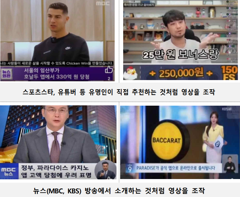 유명인·언론사 영상 조작 광고 사례. (국가정책조정회의 자료)