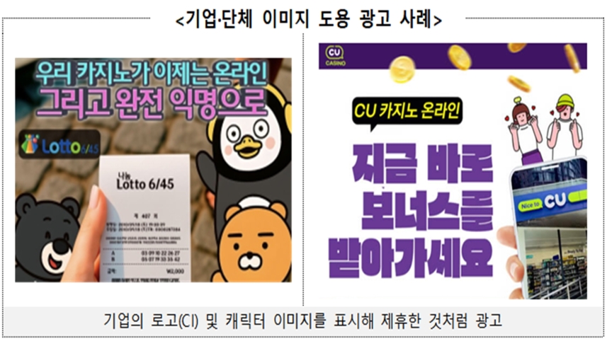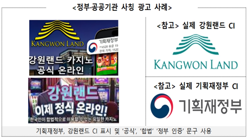 이들 광고는 유명 연예인이나 스포츠 스타가 출연해 해당 온라인 도박 사이트를 언급한 것처럼 영상을 만들거나 우리나라에서 온라인 도박 자체가 불법임에도 기획재정부 등의 명칭·로고와 '공식', '합법' 등의 문구를 사용해 문제가 없는 것처럼 오인하도록 했습니다.