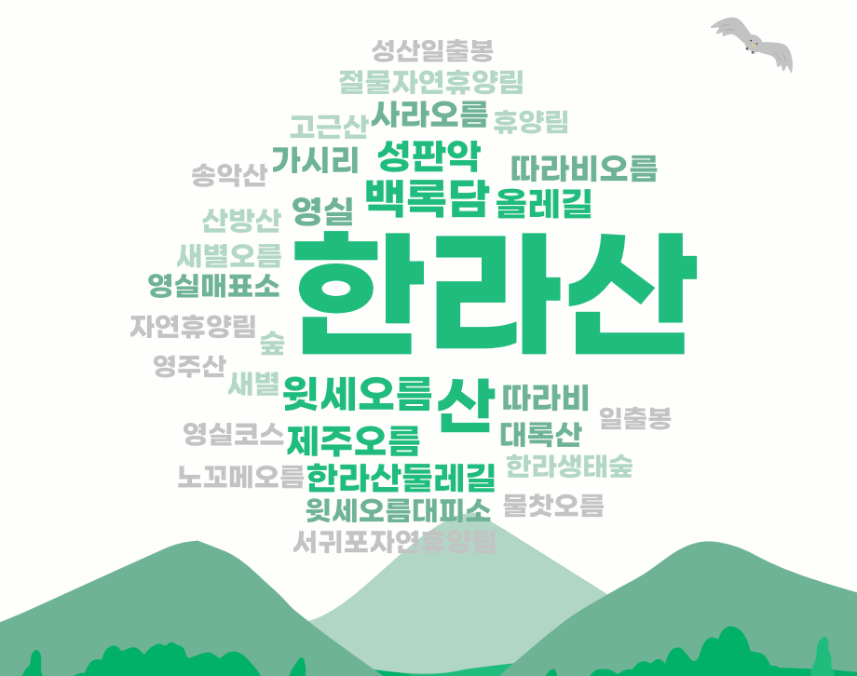 러너들이 가장 많이 언급한 한라산 러닝 거점 키워드. (‘데이터로 보는 제주여행–러닝편’. 제주관광공사)