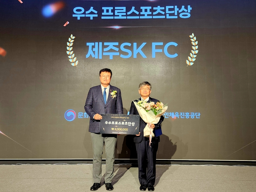 문화체육관광부는 오늘(11일) 제21회 대한민국 스포츠산업 대상에서 제주 SK에 우수프로스포츠단 부문 문화체육관광부장관 표창을 수여했습니다.