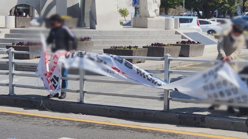 최근 제주에서는 제주4·3을 왜곡하거나 사회적 갈등을 부추기는 현수막이 잇따라 게시되며 논란이 커졌습니다. 한 원외 정당이 '대선 부정선거'를 주장하는 현수막을 학교 앞, 선거관리위원회 주변 등에 무더기로 게시해 민원이 잇따랐습니다.