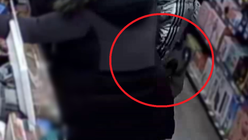 지난 25일 저녁 제주시내 한 대형 매장에서 무사증 입국 중국인이 여성 손님의 지갑을 훔치는 모습 (시청자 제공)