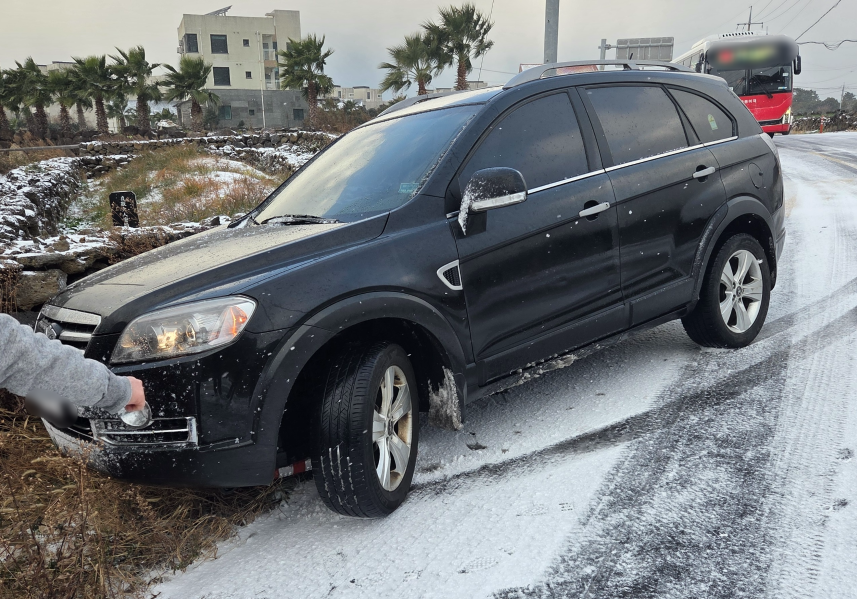 또 이보다 앞선 아침 8시 11분쯤 제주시 용담1동에선 눈길에 미끄러진 차량 2대가 부딪히며 1명이 병원으로 이송됐고, 서귀포시 남원읍에서도 차량 1대가 눈길에 미끄러지며 감귤 과수원으로 빠졌습니다.