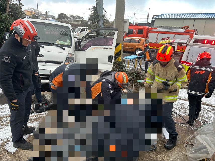 사고는 출근 시간대 집중됐습니다. 이날 오후 9시쯤 제주시 한림읍에서 70대 운전자가 운전하던 트럭이 돌담을 들이받았습니다. 이 사고로 차량과 돌담 사이에 낀 운전자가 심정지 상태로 병원으로 옮겨져 치료를 받고 있습니다.