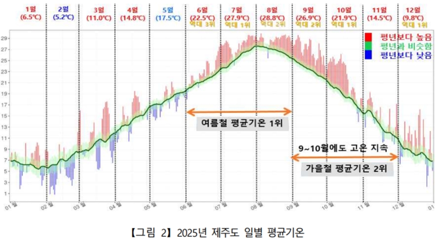 2025년 제주도 일별 평균기온 (사진, 기상청)