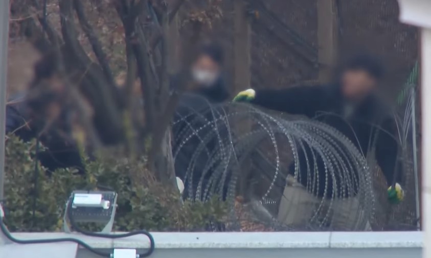 윤석열 당시 대통령실 경호처 직원들이 대통령 체포 저지를 위해 철조망을 설치한 모습