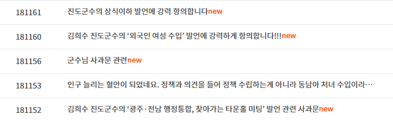 김 군수의 발언이 알려지면서 진도군청 누리집에는 김 군수의 발언을 규탄하는 게시글들이 잇따르고 있습니다.