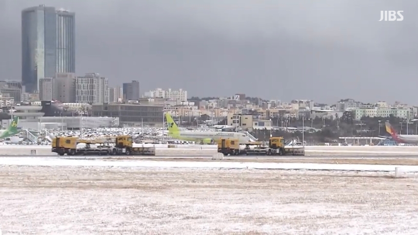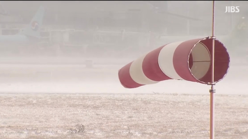 강설과 함께 강풍·급변풍 특보가 겹치면서 항공기 이·착륙은 전면 중단됐습니다.