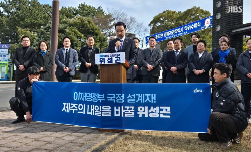 이에 "제주는 거대한 문명적 전환점에 있다"며 "기후위기, 에너지, AI 등 이재명 정부가 그려가는 사회 대전환의 흐름에서 제주만 뒤쳐저선 안 된다"고 강조했습니다.