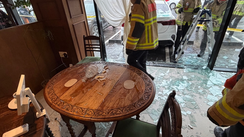 이 사고로 음식점 안에 있던 50대 여성 고객이 깨진 유리 파편에 어깨와 손 부위를 다쳐 병원으로 옮겨졌습니다. 또 가게 유리창이 깨지고 내부 집기가 파손됐습니다.