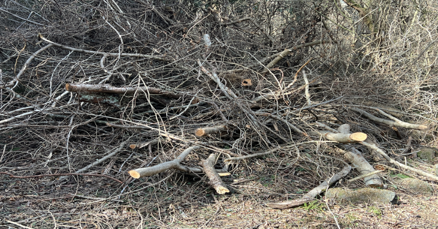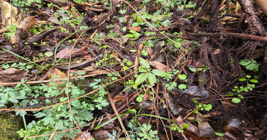벌채 후 쌓은 나무더미 아래에서 확인된 제주고사리삼 (곶자왈사람들 제공)