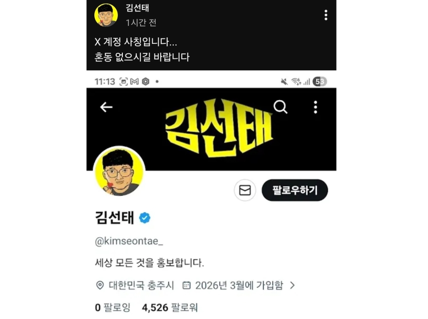김선태 "X 계정 사칭입니다.. 혼동 없으시길"