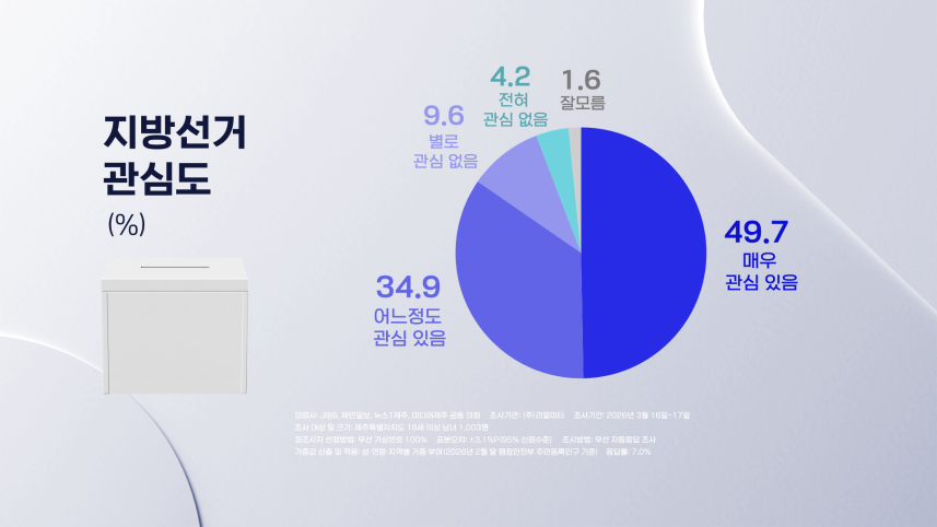 지방선거 '관심 있다' 84.6%.. '관심 없다' 13.8% 차이 커