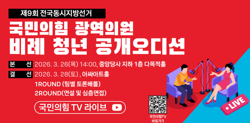 국민의힘 광역의원 비례 청년 공개 오디션 안내 이미지. (국민의힘 홈페이지 캡처)