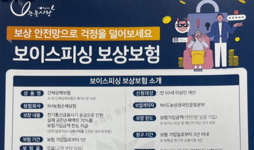 한편, 농협은행은 피해 최소화를 위해 만 60세 이상 개인이면 누구나 가입할 수 있는 '보이스피싱 보상보험'을 최근 출시했습니다.