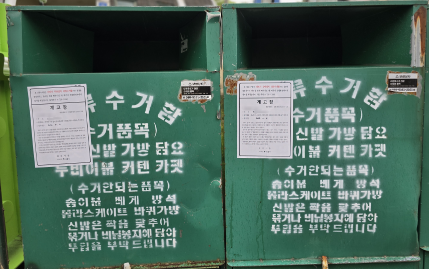무단으로 의류수거함을 설치한 업체는 2곳으로 이 가운데 A 업체는 지난 2022년과 2023년 2개 동에서 의류수거 민간대행을 맡아왔습니다.