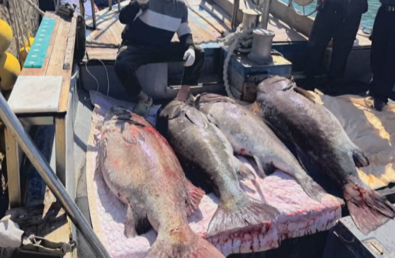 KNN 부산경남방송에 따르면, 부산에서 출항한 한 낚싯배가 지난 19일 부산 인근 대한해협에서 사람 키만 한 길이의 돗돔 5마리가 연이어 잡혔습니다.