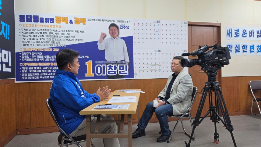 제주시 용담1동·용담2동 선거구에 출마하는 더불어민주당 이창민(왼쪽)·국민의힘 김황국 예비후보자 (촬영, 강명철)