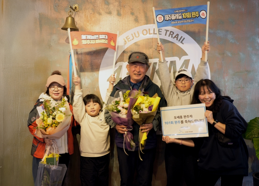 101번입니다. 제주올레 27개 코스, 437km를 한 바퀴 도는 길을 101번 반복했습니다. 만 74세 오세흥 씨 이야기입니다. 신발은 32켤레를 갈아신었고, 길 위에서 만난 이들에게 사준 밥공기만 수백 그릇이라고 합니다. 기록은 숫자로 남았지만, 변화는 사람 사이에 새겨졌습니다. 이제 200회 완주를 향해 신발 끈을 다시 묶었습니다. ■ 같은 길을 걸었지만, 같은 사람으로 남지 않았다 사단법인 제주올레는 지난 10일 오세흥 씨가 101회 완주를 달성했다고 12일 전했습니다. 경기도 안성에 거주하는 오 씨는 2016년 첫 완주 이후 10년 만에 101회라는 기록을 세웠습니다. 제주올레는 부속섬 코스를 포함해 총 27개, 437km로 이어진 장거리 도보길입니다. 배편이 맞아야 들어갈 수 있는 구간도 있고, 오르내림이 만만치 않은 코스도 적지 않습니다. 한 번 완주도 쉽지 않습니다. 이 길을 101번 걸었습니다. 오 씨에게 완주는 목표 달성이 아닙니다. 생활입니다. “사람은 돌이 지나면 자연스럽게 걷기 시작하잖아요. 걷기는 기본이고 당연한 일이에요.” 미소를 띠고 말을 이었습니다. “올레길이 왜 좋으냐고요? 솔직히 뭐라 설명을 못 하겠어요. 그래서 200회까지 걸어보려고요.” 좋다는 이유를 굳이 설명하지 않아도 됩니다. 계속 걷는다는 선택이 이미 답입니다. 어느새 걷기는 취미를 넘어 삶의 리듬이 됐습니다. ■ “스벅 왜 가냐”던 아버지, 지금은 젊은 세대와 밥을 나눈다 오 씨의 변화는 가족의 말에서 가장 또렷하게 드러납니다. 101회 완주를 축하하기 위해 제주를 찾은 둘째 딸은 “예전엔 커피를 왜 스타벅스에서 마시냐며 질색하던 아빠였는데, 올레길을 걸으며 다양한 사람을 만난 뒤 훨씬 열린 사고로 이야기할 수 있는 상대가 됐어요”라고 전했습니다. 그래서 길에서 먼저 말을 건네게 됐다는 오 씨입니다. 어디서 왔느냐고 묻고, 같이 걸어보자고 권합니다. 2016년 캠핑카를 끌고 제주를 돌던 시절, 우연히 만난 청년 두 명에게 열흘 가까이 식사를 챙겨준 일도 있습니다. 101회 완주 소감을 이렇게 전하는 오 씨. “신발은 32켤레 갈았고, 밥은 수백 그릇 샀다.” 유쾌한 문장이지만, 그 안에는 스스로를 밀어붙인 시간이 들어 있습니다. 걷는 동안 체력만 키운 것이 아니라 사람을 남겼습니다. ■ 은퇴는 축소가 아니라 확장이라는, 몸의 증명 2010년 은퇴 후 한 달 살이를 위해 제주에 내려왔을 때 처음 올레길을 걸었습니다. 당시에는 길 표식과 정보가 지금처럼 정비되지 않았습니다. 그럼에도 길이 좋아 안내소를 찾아가 현금으로 후원했습니다. 지금도 제주올레 후원자로 이름을 올리고 있습니다. 이번 101회 완주를 기념해 101만 원을 추가로 기부했습니다. 은퇴 이후의 시간도 비워두지 않았습니다. 반복해 걷는 순간은 흘려보내는 게 아니라 쌓아 올린 의미들이었습니다. 10년 동안 101번 완주한 것은 거리가 아닌, 태도의 축적입니다. 최근 제주올레에는 혼자 걷는 청년 여행자, 일과 이동을 병행하는 이들, 새로운 루틴을 찾는 중장년층이 함께 걷고 있습니다. 혼자 출발하지만 길 위에서는 서로 눈빛과 말을 섞습니다. 오세흥 씨는 그 한가운데서 자연스럽게 세대를 잇는 매개가 됐습니다. ■ 200회, 기록이 아니라 질문이 되다 왜 걷느냐는 질문에 길게 답하지 않습니다. 대신 이렇게 말합니다. “제주올레길 걷기는 멈출 수가 없다는 게 매력이죠.” 101번 완주한 것은 길이 아니었습니다. 자기 삶입니다. 32켤레의 신발은 닳았지만, 마음의 경계는 그 이상 옅어졌습니다. 밥공기 수백 그릇은 비용이 아니라 연결이었습니다. 사회는 빠르게 고령화되고 있습니다. 그러나 오 씨는 굳이 가는 나이를 아쉬워하지도, 숨기려 하지도 않습니다. 대신 시야를 넓혔습니다. 74세의 한 남자가 제주를 101번 완주했습니다. 체력의 기록이 아니라, 삶의 방향을 고쳐 쓴 시간이었습니다. 오늘 우리는 제주를 101번 돈 사람이 아니라, 101번 자기 인생을 다시 시작한 사람을 만났습니다.