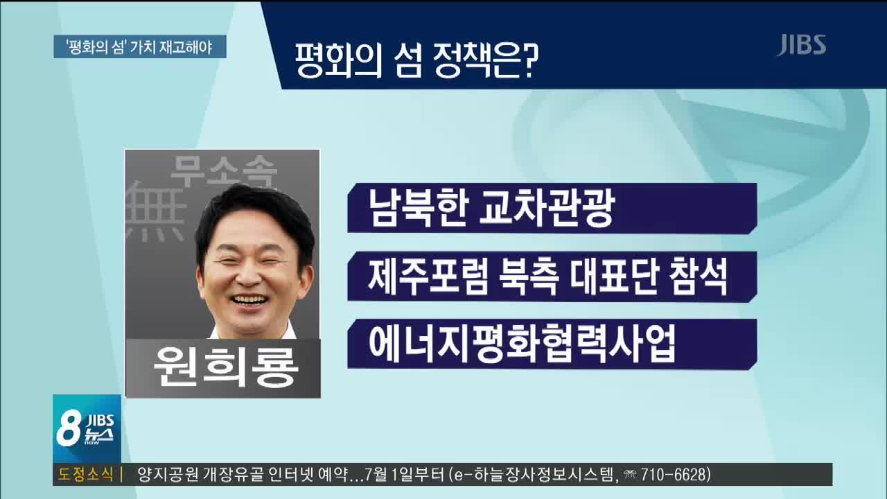 도지사 후보들의 공약을 점검해보는 순서, 오늘은 마지막으로 평화의 섬을 조성하기 위한 정책을 살펴봤습니다.