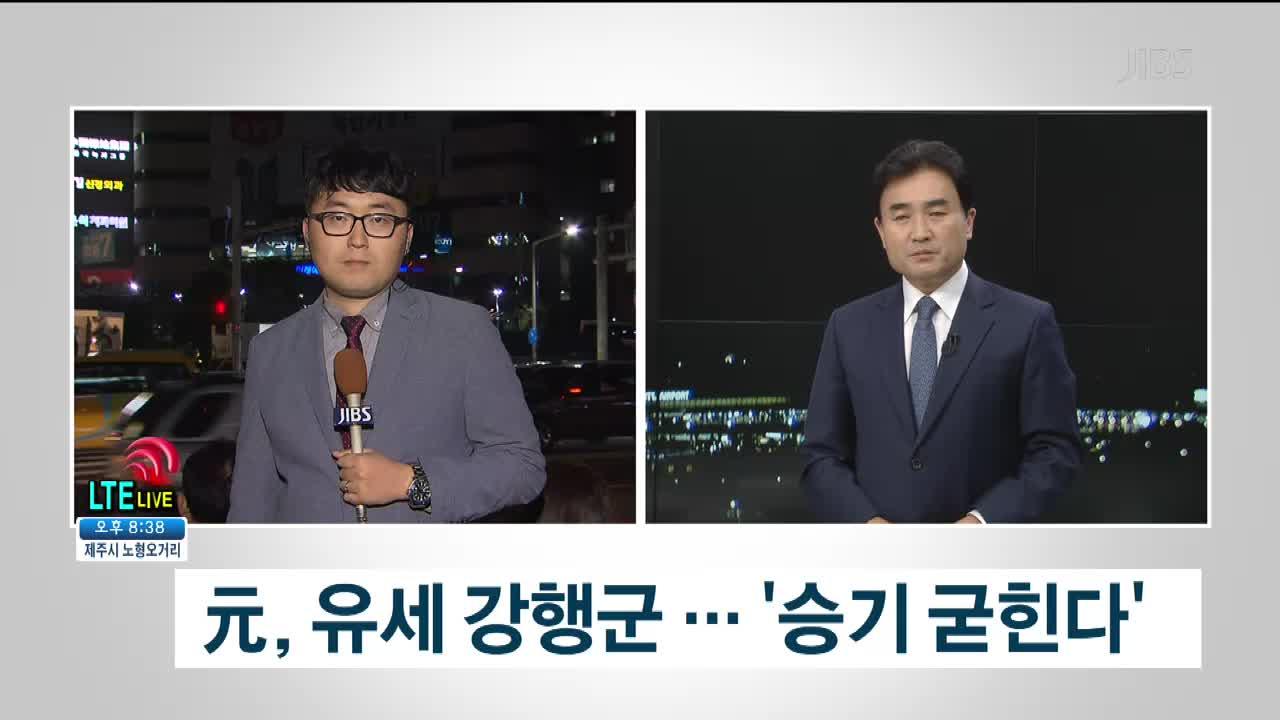 원 후보는 오늘 오후 서귀포시에서 총력유세를 마치자마자, 이곳으로 와 조금 전 8시부터 제주시 유세를 시작했는데요.