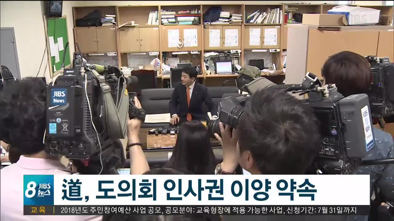 "의장, 운영위원장, 각 정당 원내대표와 공식적으로 똑같은 취지로 제안을 했습니다. 도지사로서 얼마든지 인사권 행사를 열어놓고 함께 이 부분을 만들어나가겠다고."