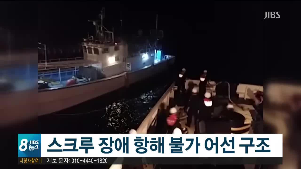 스크루에 어망이 감겨 항해가 불가한 어선에 해경에 구조됐습니다.