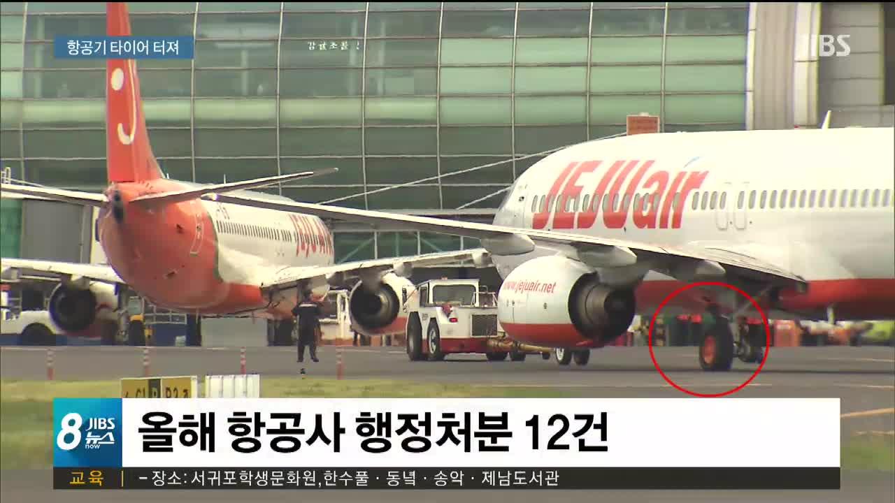 승객 189명을 태우고 김포를 출발해 제주에 도착한 제주항공 7C107편 기체 뒤편 오른쪽 바퀴가 터졌습니다.