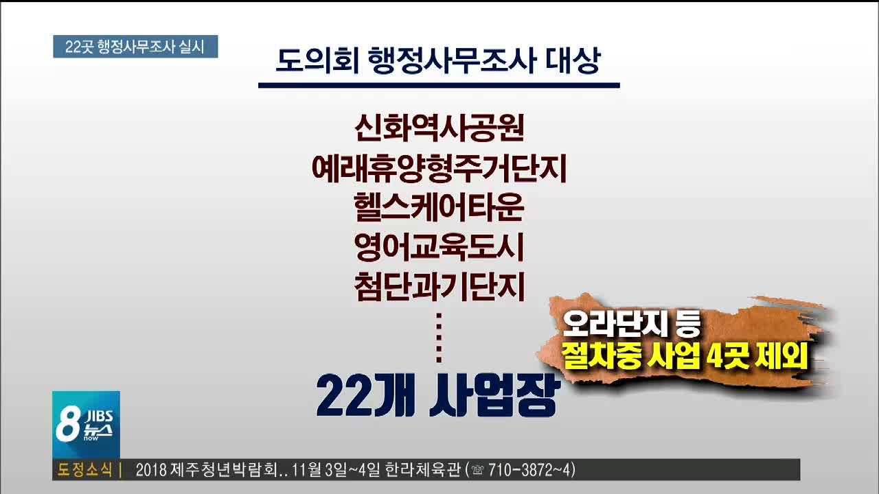 신화역사공원을 비롯해, 예래휴양형주거단지, 헬스케어타운, 영어교육도시와 첨단과기단지등 제주국제자유도시개발센터 JDC가 사업을 시행했거나 관여한 사업장이 대부분 포함됐습니다.